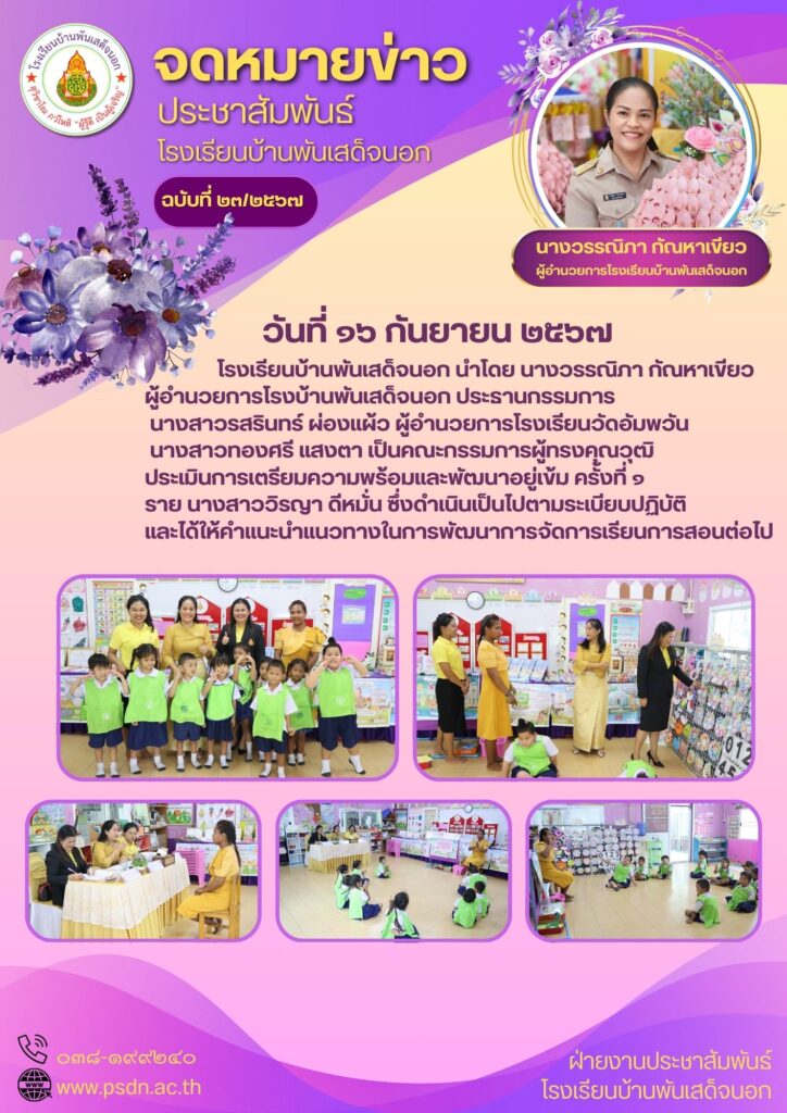 โรงเรียนบ้านพันเสด็จนอก นำโดย นางวรรณิภา กัณหาเขียว ผู้อำนวยการโรงบ้านพันเสด็จนอก ประธานกรรมการ นางสาวรสรินทร์ ผ่องแผ้ว ผู้อํานวยการโรงเรียนวัดอัมพวัน นางสาวทองศรี แสงตา เป็นคณะกรรมการผู้ทรงคุณวุฒิ ประเมินการเตรียมความพร้อมและพัฒนาอยู่เข้ม ครั้งที่ ๑ ราย นางสาววิรญา ดีหมั่น ซึ่งดำเนินเป็นไปตามระเบียบปฏิบัติ และได้ให้คำแนะนำแนวทางในการพัฒนาการจัดการเรียนการสอนต่อไป